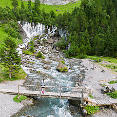 Mehr als hundert Meter stürzt das Wasser über mehrere Kaskaden in die Tiefe. Ein unglaublich kraftvoller Wasserfall in der Nähe der Lenk, der besonders nach der Schneeschmelze oder starken Regenfällen sehr beeindruckend ist.