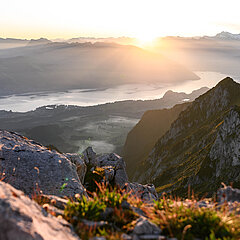 Geniessen Sie die fantastische Aussicht vom Thunersee bis zum Jura. Die Felsengalerie auf Höhe der Bergstation führt direkt zur Panorama-Aussichtsplattform in der Stockhorn-Nordwand.