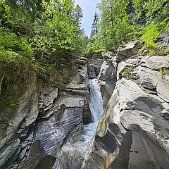 Die Tour von der Lenk führt Sie direkt zum Iffigfall, einem der eindrucksvollsten Wasserfälle der Schweiz. Auf mehreren Kaskaden stürzt das Wasser über 100 Meter in die Tiefe und erzeugt eine spürbare Energie inmitten des Naturschutzgebiets Gelten-Iffigen. Der Weg verläuft entlang des Iffigbachs und bietet einen direkten Blick auf dieses Naturschauspiel. Als optionale Weiterführung der Tour bietet sich nach dem Wasserfall der steile Aufstieg zur Iffigenalp auf 1'550 m ü. M. an. Wer die Route dort verlängert, wird mit dem Panorama des Iffigtals belohnt.