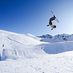 The Gran Masta Park is the hotspot for snowboarders and freeskiers as well as for families with children. There is something for all skill levels.