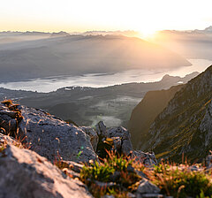Die schroffen Felswände des Niderhorns sind ein Hingucker. Die fantastische Rundumsicht auf die Berge im aufgehenden oder untergehenden Sonnenlicht noch viel mehr.