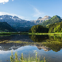 Kurze Auszeit für Erholungssuchende mit wenig Zeit. Das idyllische Lenkerseeli liegt nur ein paar Schritte vom Dorf entfernt und ist das zu Hause von Vögeln und Enten.
